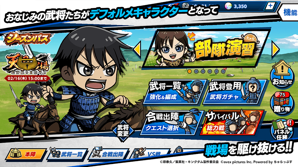 Players can experience a unique short story exclusive to Kingdom Dash during in-game events. Witness military commanders in situations not seen anywhere else and immerse yourself in this captivating world. The excitement of “Kingdom” remains unchanged, even with the adorable character designs!