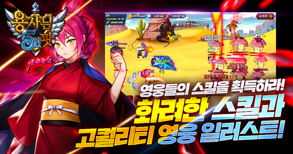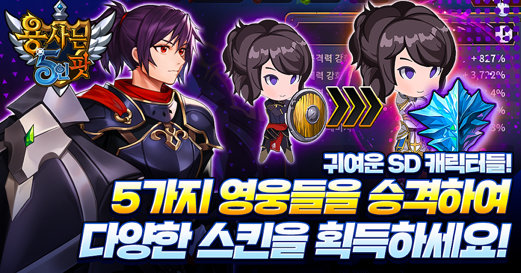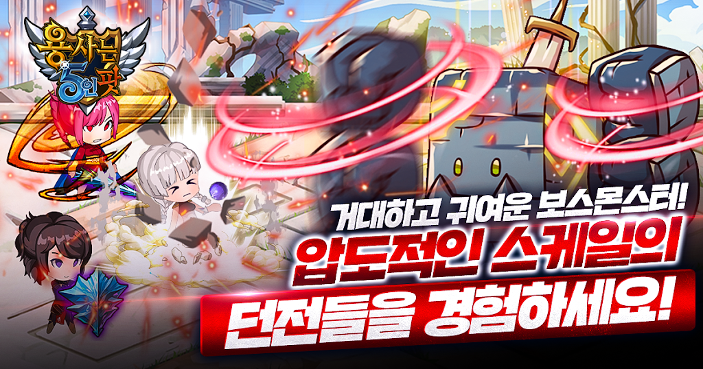 Coming to 용사는 5인팟 : 300연뽑 증정, you will come to a group of warriors. And this group of warriors has up to 5 members, each member will possess different strengths and fighting skills. You will lead this group of warriors to participate in extremely attractive and epic battles with extremely intelligent opponents that will bring you the most perfect, dynamic, and thrilling moments of entertainment. Are you ready to fight?