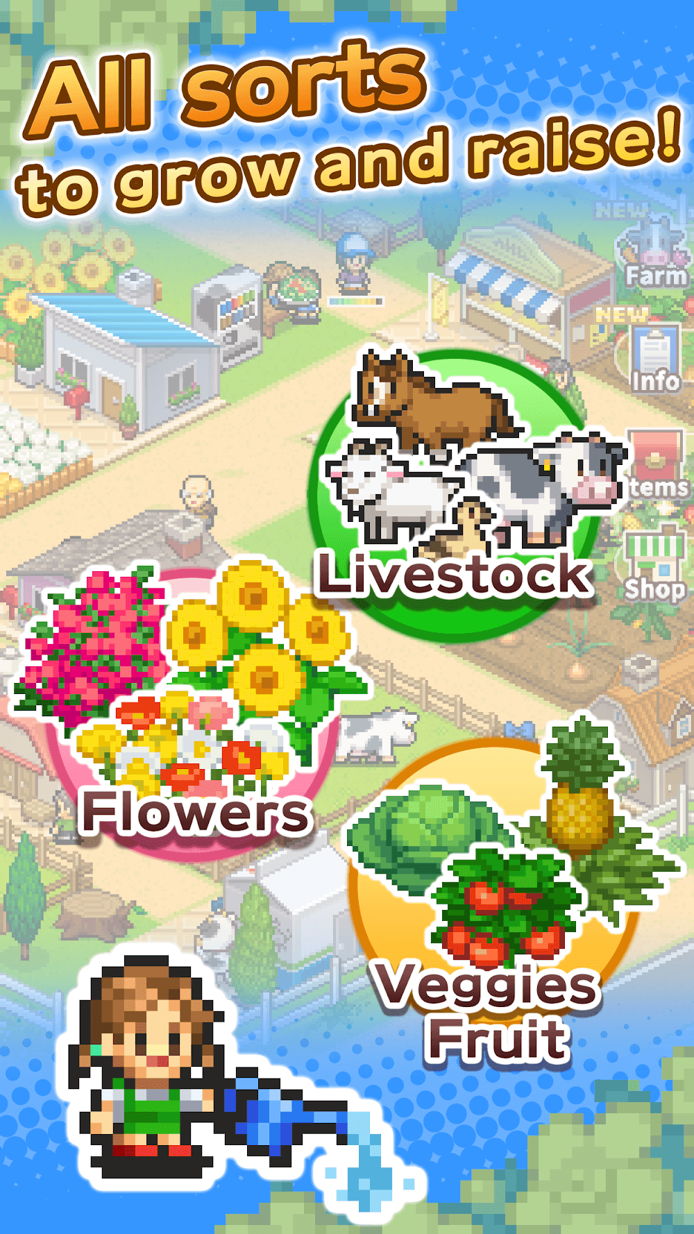 - Animal Crop Diversity: Basically, like other farm games, players can choose the types of animals and crops on their farm. At 8-Bit Farm, players will have countless options to suit their preferences. This diversity not only increases the appeal of the game but also encourages players to calculate how to get the best yield.
