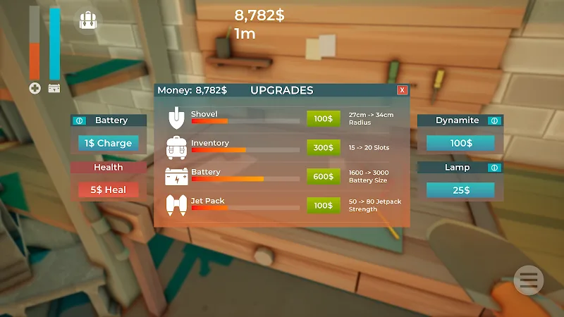 - Constant Equipment Upgrades: Useful equipment will accompany players throughout this journey. Players will start digging with a rudimentary shovel. After having better economic conditions, players can upgrade it or invest in more modern tools.