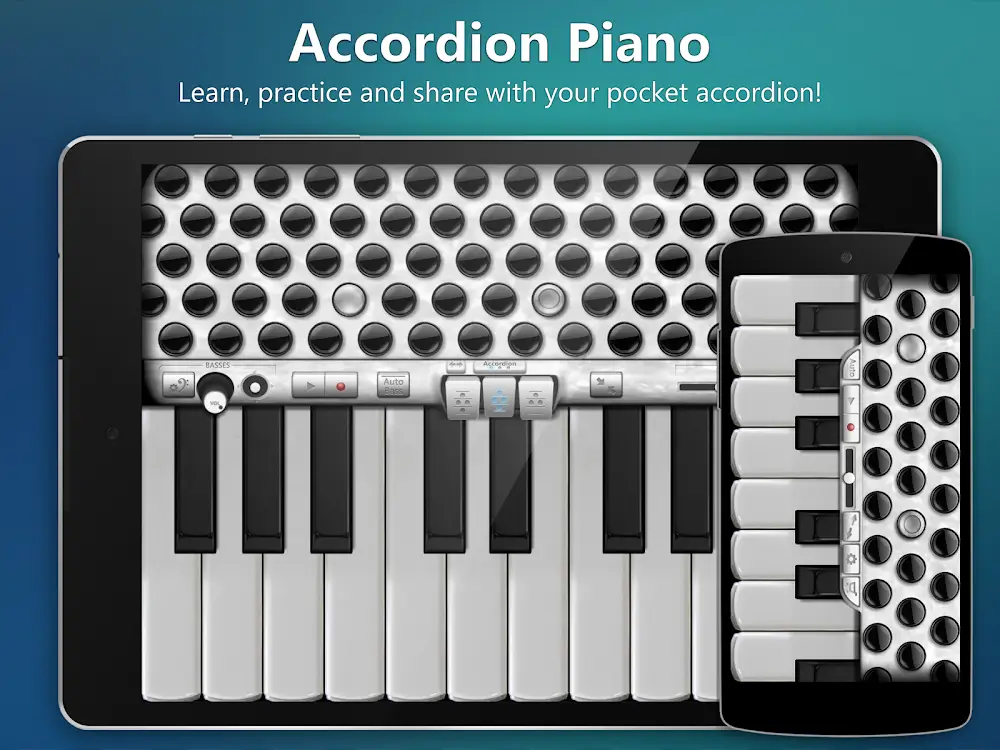 Accordion Piano will be an application that can give its users the experience of playing Accordion right on their devices. If you are looking for an application that can help you immerse yourself in the special melodies of the Accordion, this will be a perfect application. With this application, users will be able to create for themselves many different styles of Accordion right on their compact device and enjoy a wonderful musical experience.