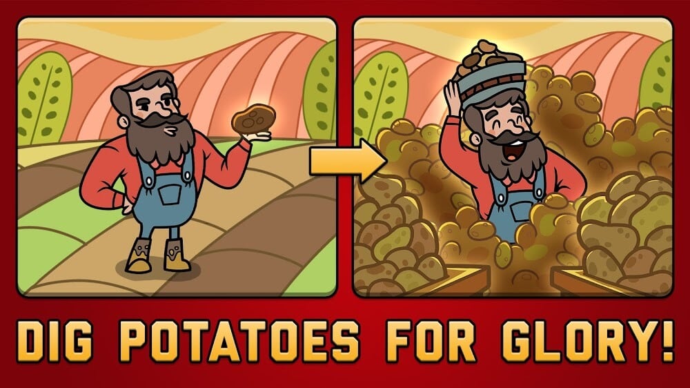 In AdVenture Communist, the first step on the path to glory is the acquisition of glorious potatoes. You need to grow potatoes and gather them to gain additional Resources, allowing you to contribute to the State and climb the prestigious Ranks. Potatoes are a key resource in this game. Remember that the comrades, potatoes are the backbone of a strong communist society. Potatoes are the backbone of a strong communist society. You need to roll up your sleeves, get your hands dirty, and start digging potatoes to accomplish greatness. Only then will you be able to realize your full potential?