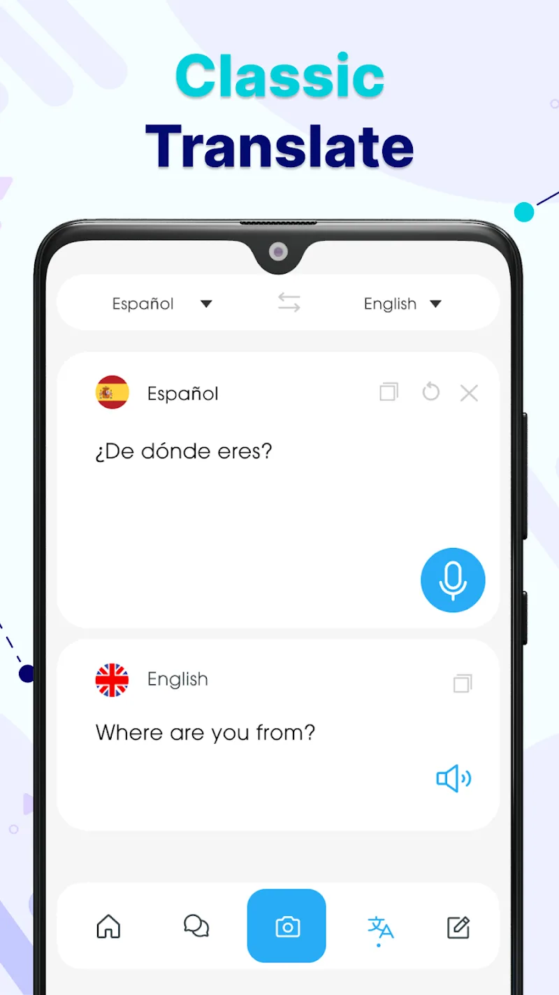 Language barriers are the biggest problem in human communication. Translate App – AI Translator has found a useful solution to speed up the translation process. Users can use the translation tool in many different forms. The application will support users to translate by voice and by camera.