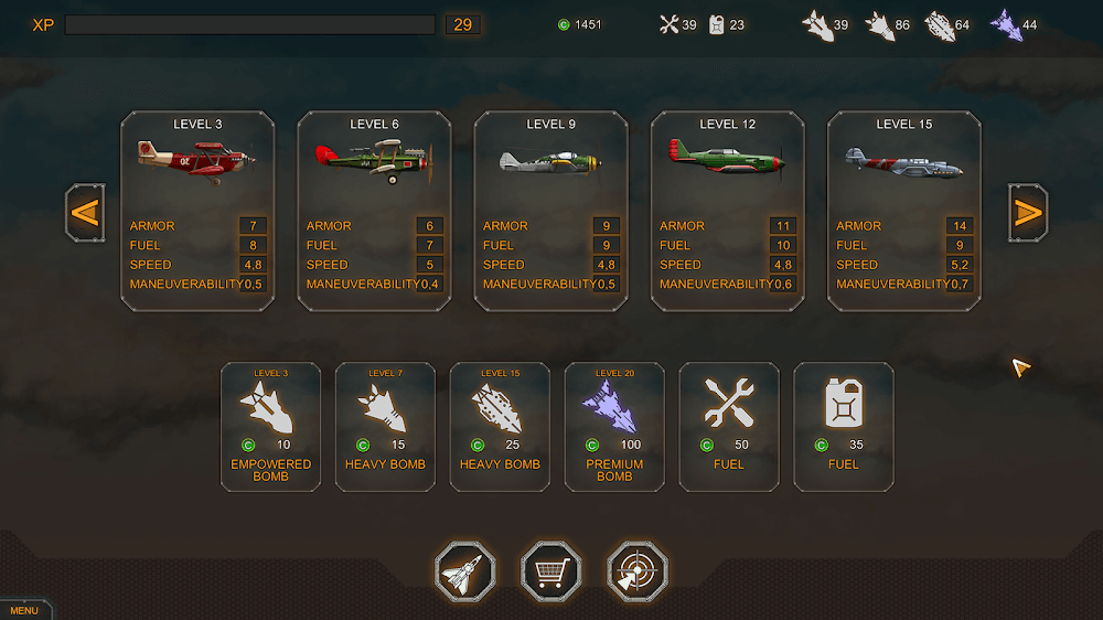 The game has a simple mechanism but requires good orientation skills to attack and avoid dangerous attacks. Not only anti-aircraft weapons but enemy planes will constantly approach you. Therefore, the rate of running out of HP and being destroyed is often very high, but everything becomes a piece of cake when the player is too familiar with the control. The plane’s stats are also improved when more advanced weapons are added to cause great damage. Its parts will also be refreshed through stat upgrades and become an airborne threat to many different areas.
