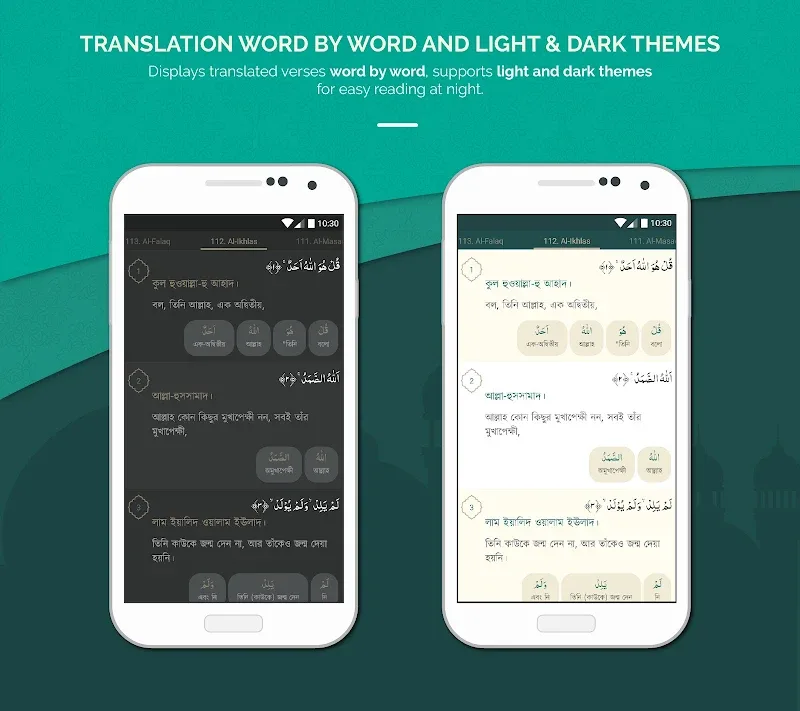 Al Quran Bengali কুরআন বাঙালি is a mobile application for Bengali-speaking Muslims. The app provides the complete Arabic text of the Quran with Bengali (and sometimes English) translations, MP3 audio, and features such as prayer times and Qibla directions to make reading, listening to, and understanding the Quran more convenient each day.