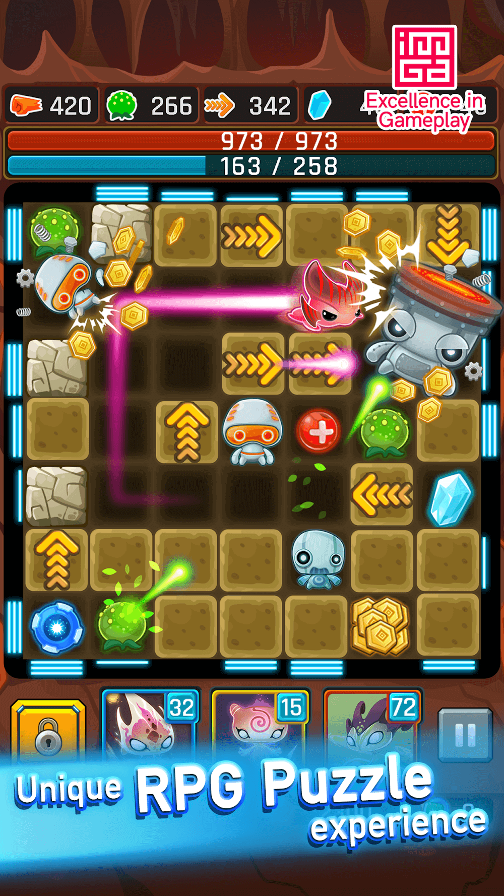 Alien Path’s Mod APK gameplay is truly out of this world because of its unique combination of role-playing, puzzle, strategic path planning, and other components. For players to successfully eliminate enemies, they will need to use strategic movement to direct aliens into the invading robots so that they can destroy them. To save Earth and the universe, you must devise a strategy because every move counts.