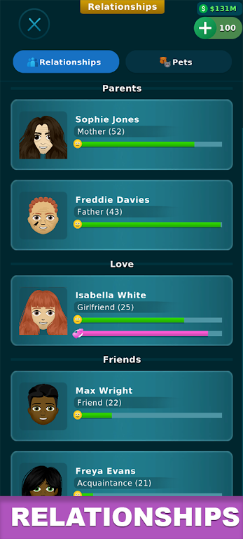 AltLife’s strengths are often without any conditions and require reaching a certain level to unlock. All choices may or may not be suitable for the player, and they are forced to come up with other solutions. From the beginning of the game, basic stats such as jobs and majors need to be carefully selected because they affect the following things. You still continue to work part-time to earn money or build a relationship. The game simulates the family system, and you have the right to decide on marriage and having children. This is the opportunity to do things that you have missed before.
