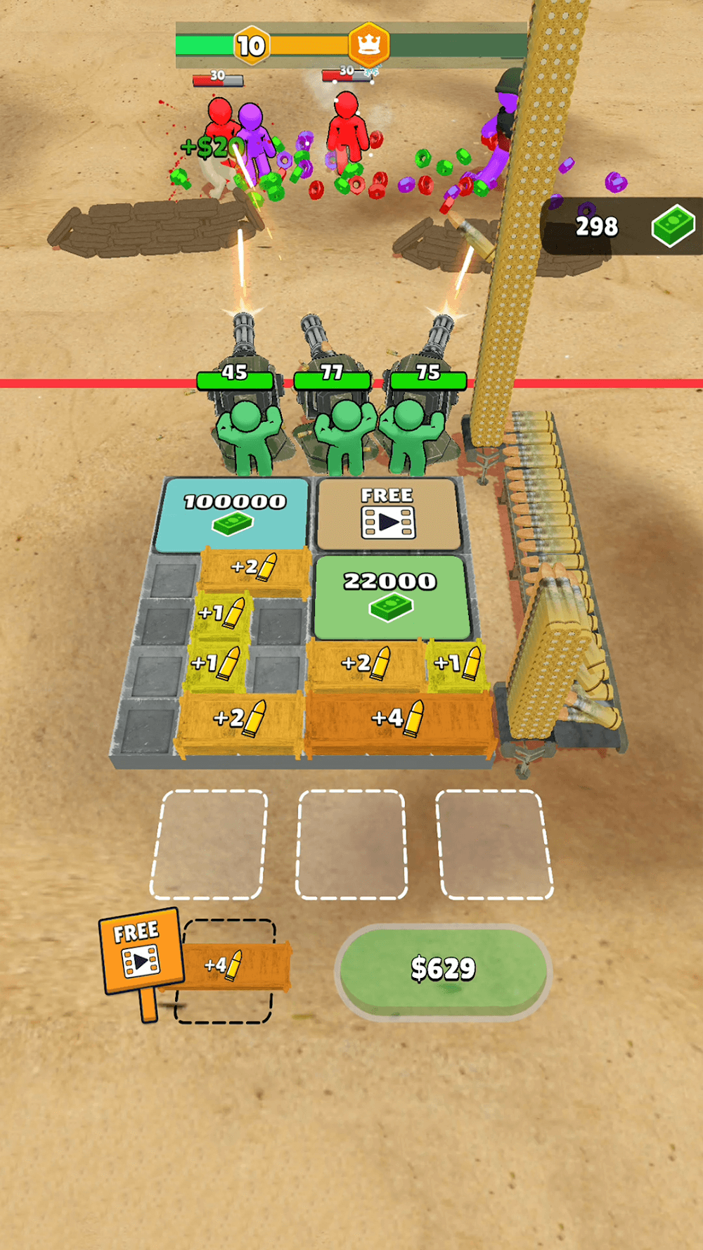 Ammo Fever: Tower Gun Defense urges each person to participate in many battles against enemies in many different ways. In each battle, they need to shape their own abilities and upgrade their strength to fight against the enemy. Ammo continuously becomes stronger to destroy more enemies.