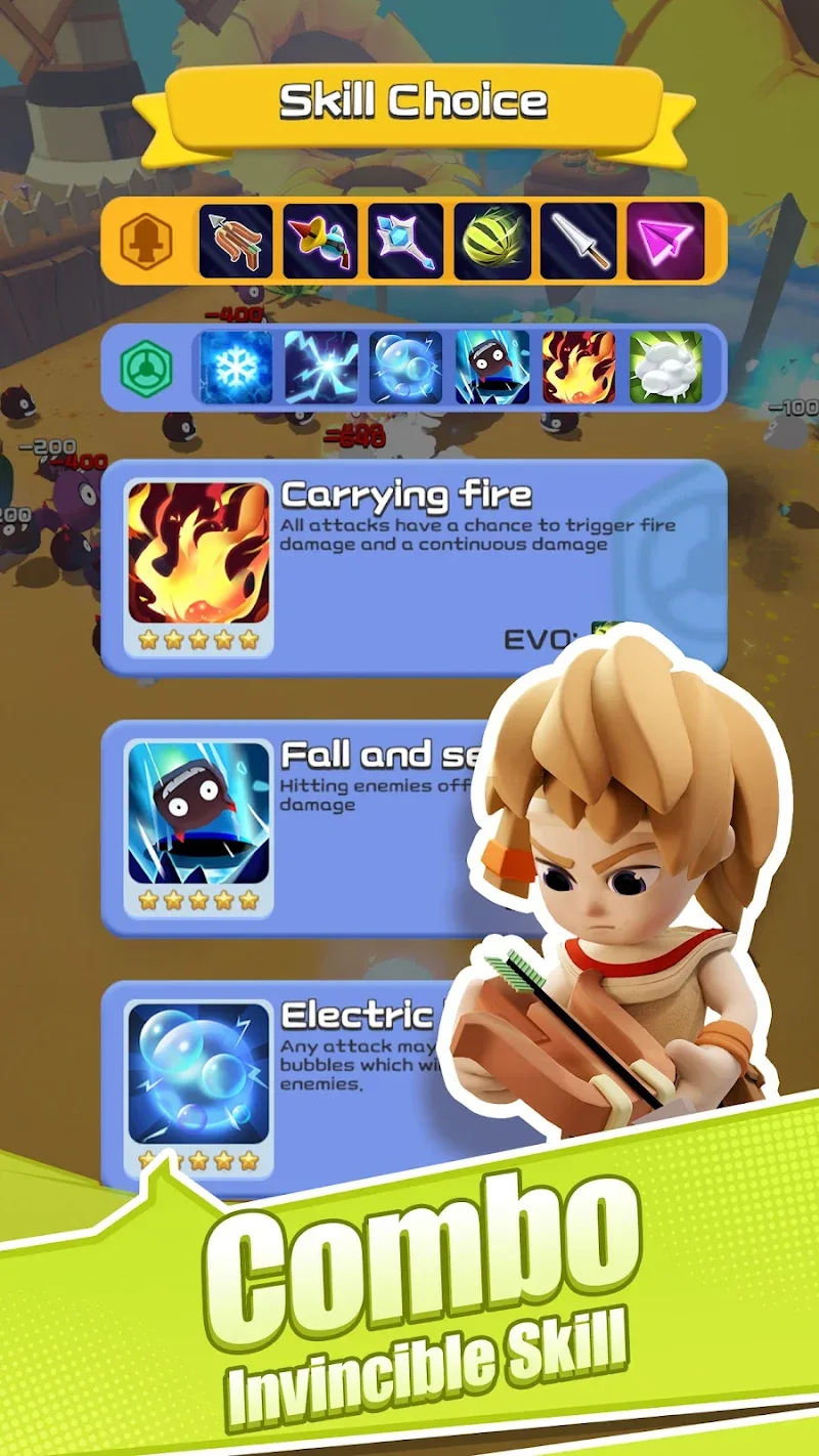 In Animals BAM BAM Mod APK, fight monstrous hordes, wield powerful weapons, collect pets, and upgrade gear in chaotic roguelike battles.