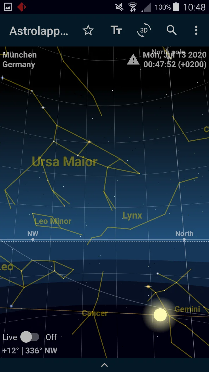 The core of Astrolapp is its Live Mode which uses your phone’s compass and gyroscope to display an accurate map of the sky above you. Just hold your phone overhead and the app overlays the celestial objects visible in that direction. Labels and lines identify stars, constellations, planets and more against the live camera view. It’s like having a professional astronomer right next to you!