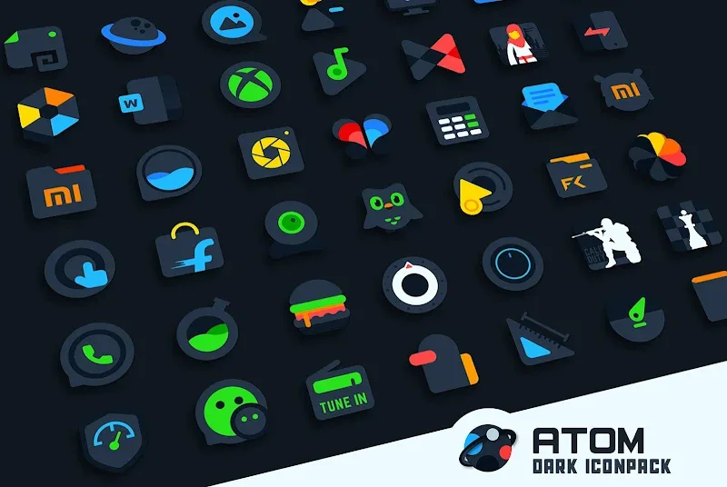 The dark background with colorful icon patterns will bring a very different experience to users. Atom IconPack has created such a special icon pack to share with users. This icon pack is created from unique ideas combining warm colors with dark colors.