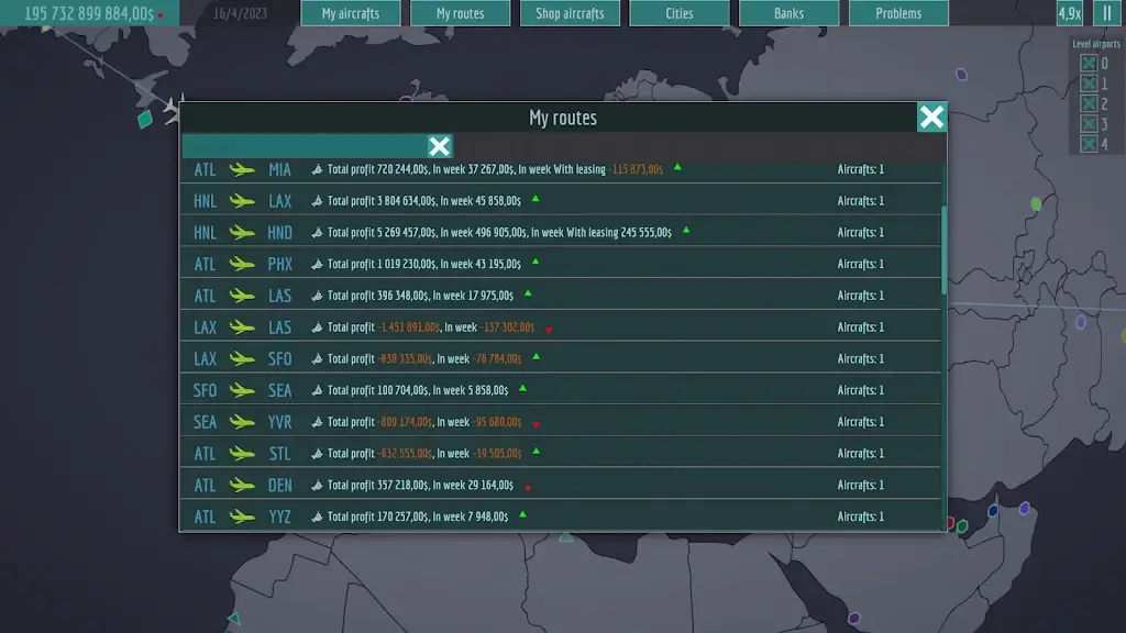 - Route Complexity: The system often does not limit the establishment of different flight routes between cities in the world. From there, you can quickly see their complexity, and the profits continuously increase.