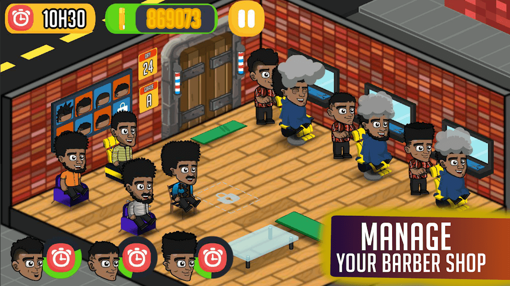 While you can create countless one-of-a-kind hairstyles, you should prioritize your client’s wishes above all else. You will have to use the tools provided to create the desired hairstyle. After each successful service to a guest, you will receive a particular bonus. Customers are the king and most influential people in any business, so do everything you can to make them feel special when they leave your barbershop. Each customer will also have limited waiting time, so if they have to wait too long, they will get bored and leave.