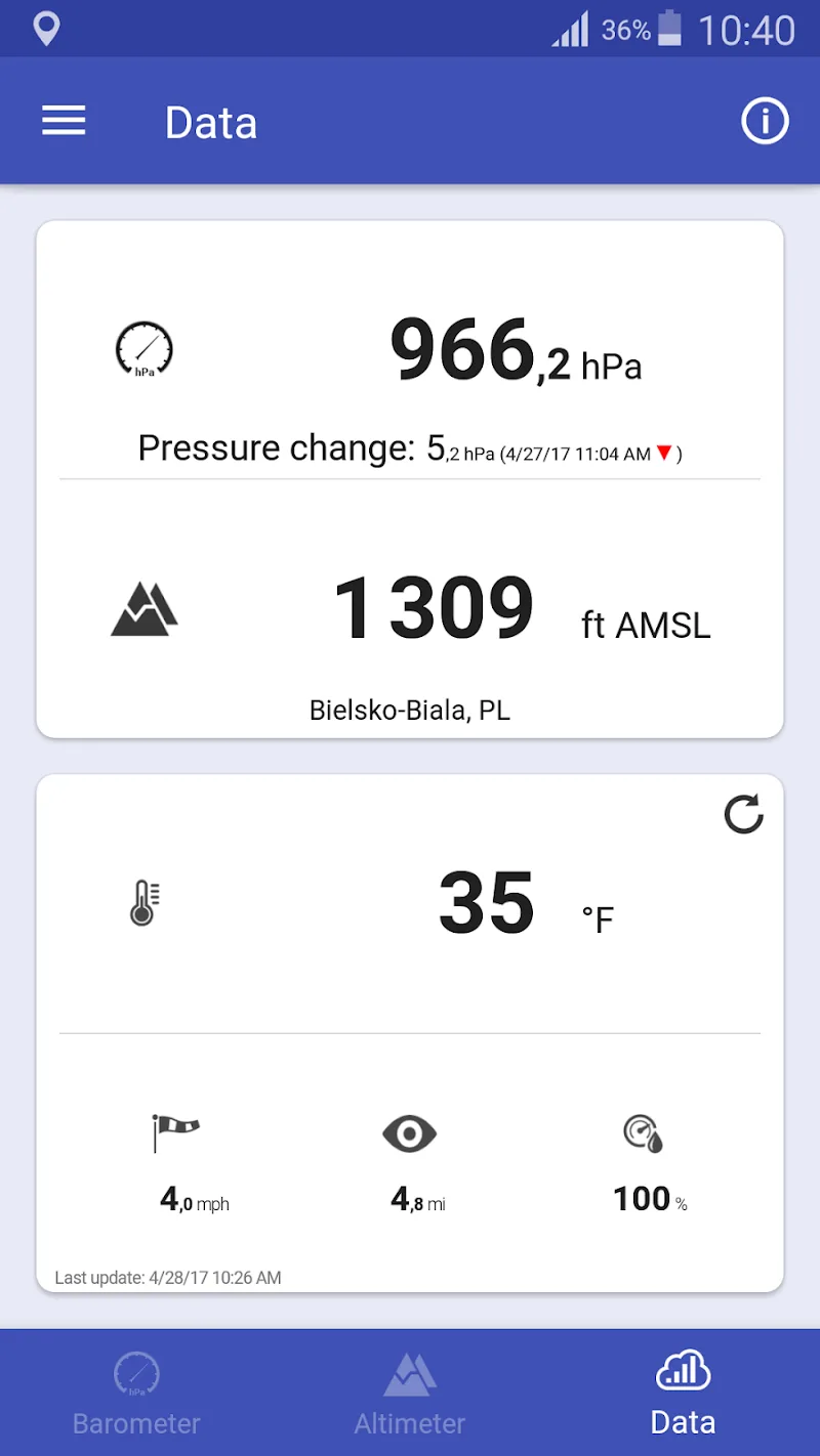 Do you want to control air pressure or measure altitude quickly and effectively? Then Barometer & Altimeter is the outstanding tool that provides you with the most accurate measurement data to help you get the results that meet your needs. There are many different types of parameter display, you can choose and set to serve your viewing needs in the future.