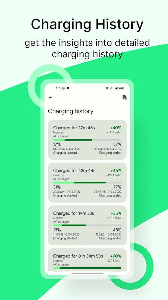 - Adaptive Charging Habits: The application offers different types of full battery notifications for users to choose from to be notified at the right time.