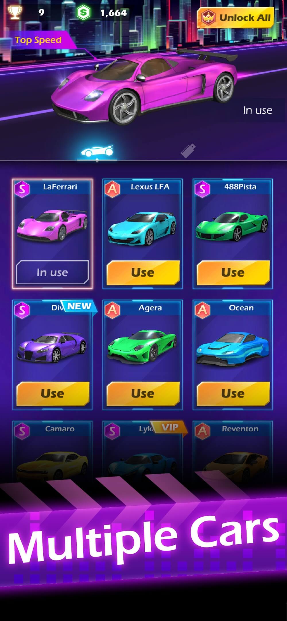 Beat Racing is a car driving game combined with music where you will watch your car go through many different roads that match your mood. It may be aimless at first but will continuously become more interesting as you overcome various challenges. From there, the fun is something you can feel and it can be perfectly combined with the songs this game provides. A space full of light and with a futuristic design will always bring you surprises that you did not expect.