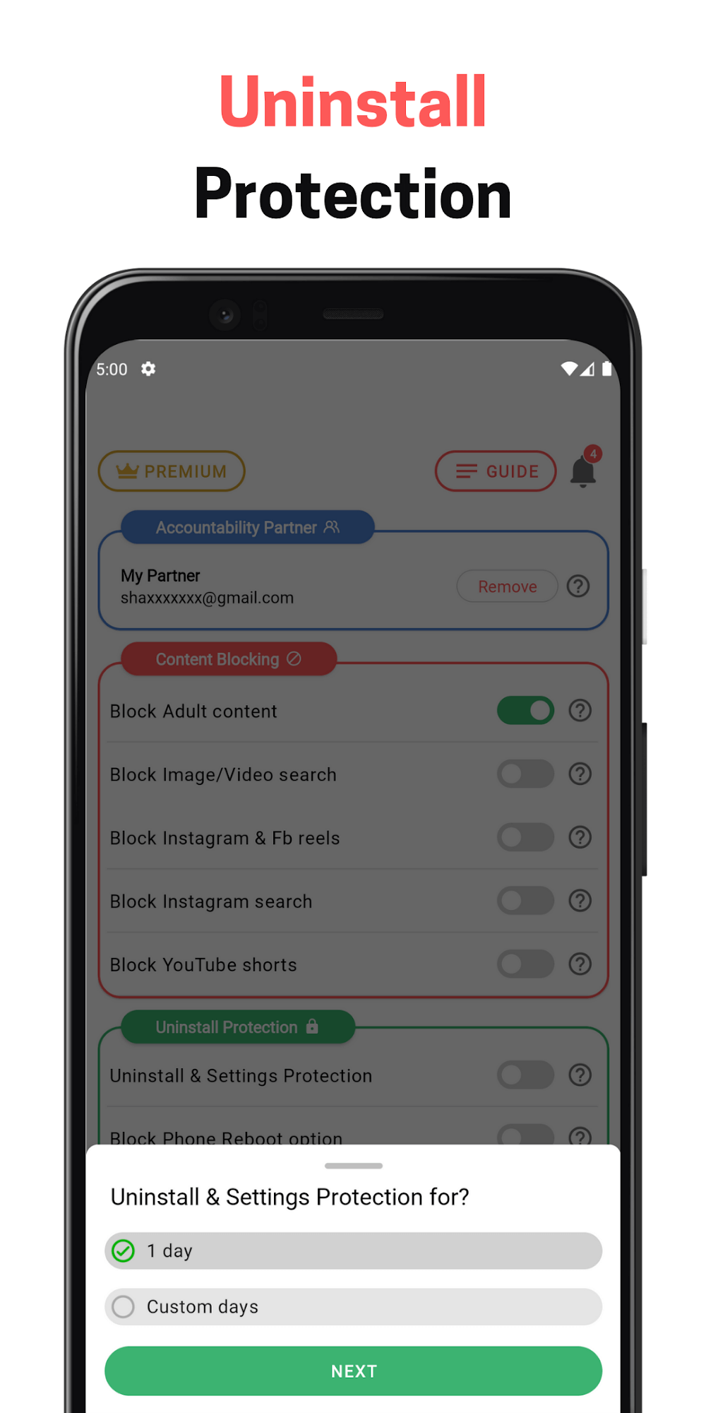 - Accountability Partner: In some cases, you can add access to partners. From there, they can quickly unlock or revoke new settings.