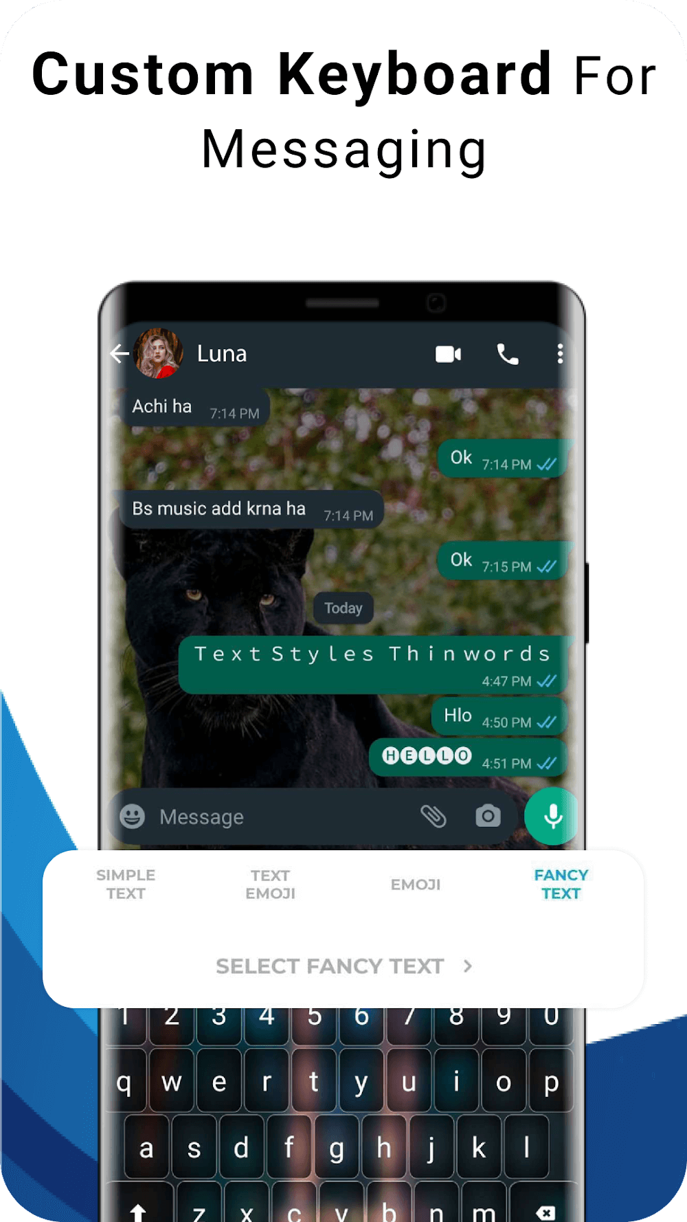 On the keyboard, a straightforward option can be used to pick elegant text. Because of the adaptable search fonts bar, inventive text can be located and seen in several different formats before being selected. If you save them, you can easily access the attractive fonts you prefer to use for Instagram and WhatsApp. When selecting some text in any app, you can use the inspiration button to convert it into various unique typefaces.