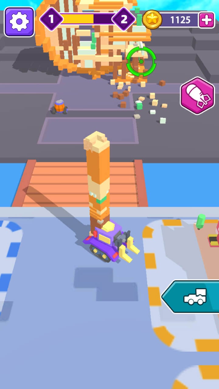 After you’ve customized your cannon truck, you’ll be able to take on the game’s challenges. Building Damage requires you to move the cannon cars and select the most reasonable aiming range to quickly destroy the house. When destroying will use a lot of bombs, and you must load bombs continuously so that the firing process does not stop.