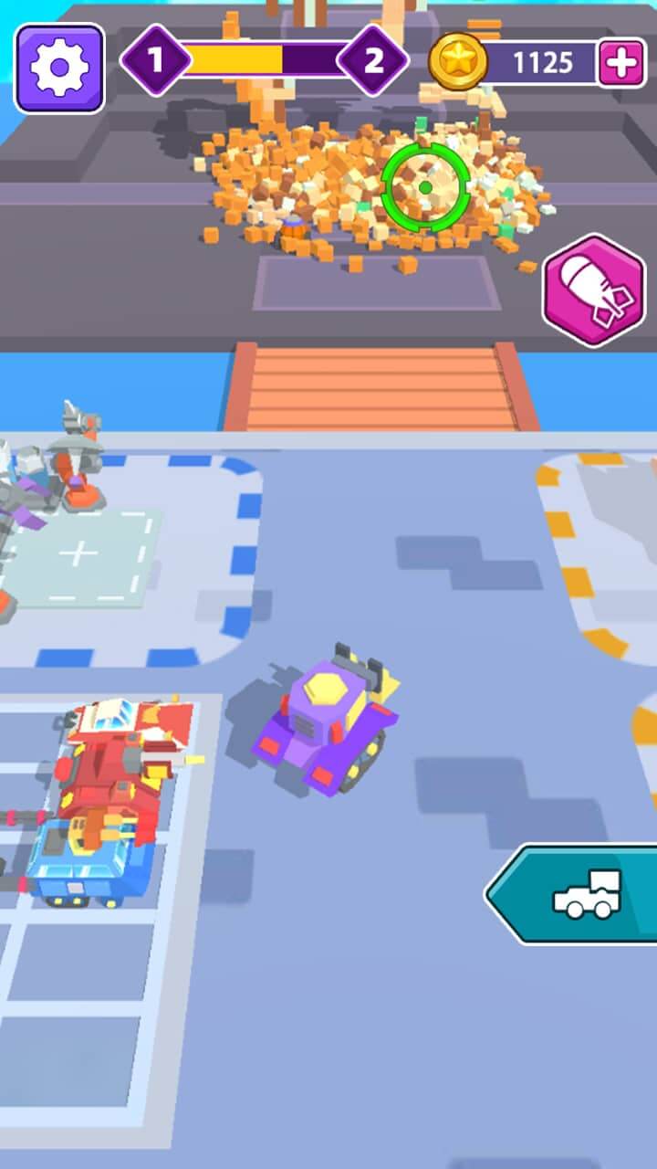 You have the option of selecting large cannon vehicles to quickly destroy the city. There will be many different types of cannon trucks of varying sizes, and as the difficulty level increases, you will be able to unlock the large cannon cars. The game will also provide you with additional features to control the car and serve you while on the move.