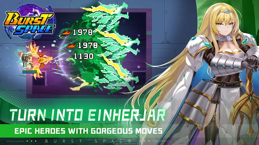 Burst Space is a journey of fighting in different areas of the galaxy and requires each person to survive throughout the gameplay. Each person can accompany legendary warriors with the most suitable weapons. In particular, the diversity of tactics can be exploited through unexpected roguelike mechanisms.