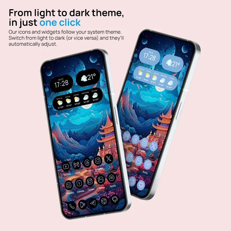The application will bring you an extremely comprehensive and attractive icon pack. This icon pack will bring you countless unique themes with different styles, giving you the most attractive and interesting options.