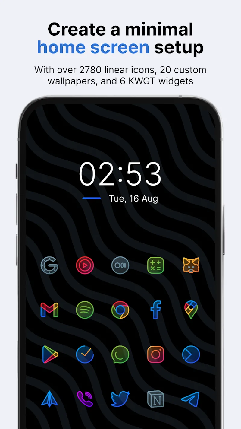 If you are a person who loves new things and is always creative, why not reform your phone with Caelus Duotone Icon Pack to make your phone more unique and new? The application will help you realize what you think in your head on your phone simply and easily. So, what are you waiting for without starting to transform your phone?
