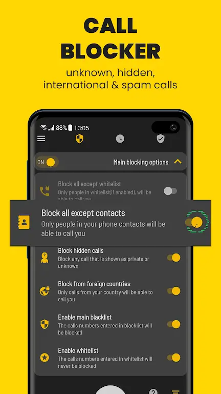 - Blacklist Control: Not only subscribers that bother you, time-consuming calls can also become targets. Moving between blacklists and whitelists is completely understandable because each person often has different feelings about them.