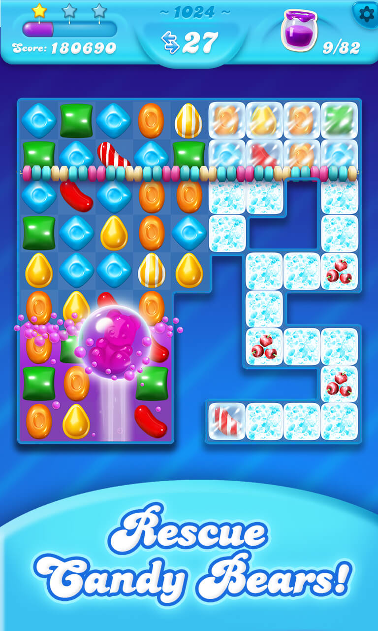 Not as simple as previous versions, people may be fooled by the sweet theme in this version. As you pass through the levels, you will encounter increasingly difficult puzzles, testing your intelligence and patience. Overcoming new challenges, such as Honeycomb and Bubble levels, requires you to think carefully, sometimes go beyond the framework of the game strategy and meticulously plan the next moves. But don’t worry, because each challenge brings a sweet sense of accomplishment like candy, the ability to create special candies that can unleash powerful moves.