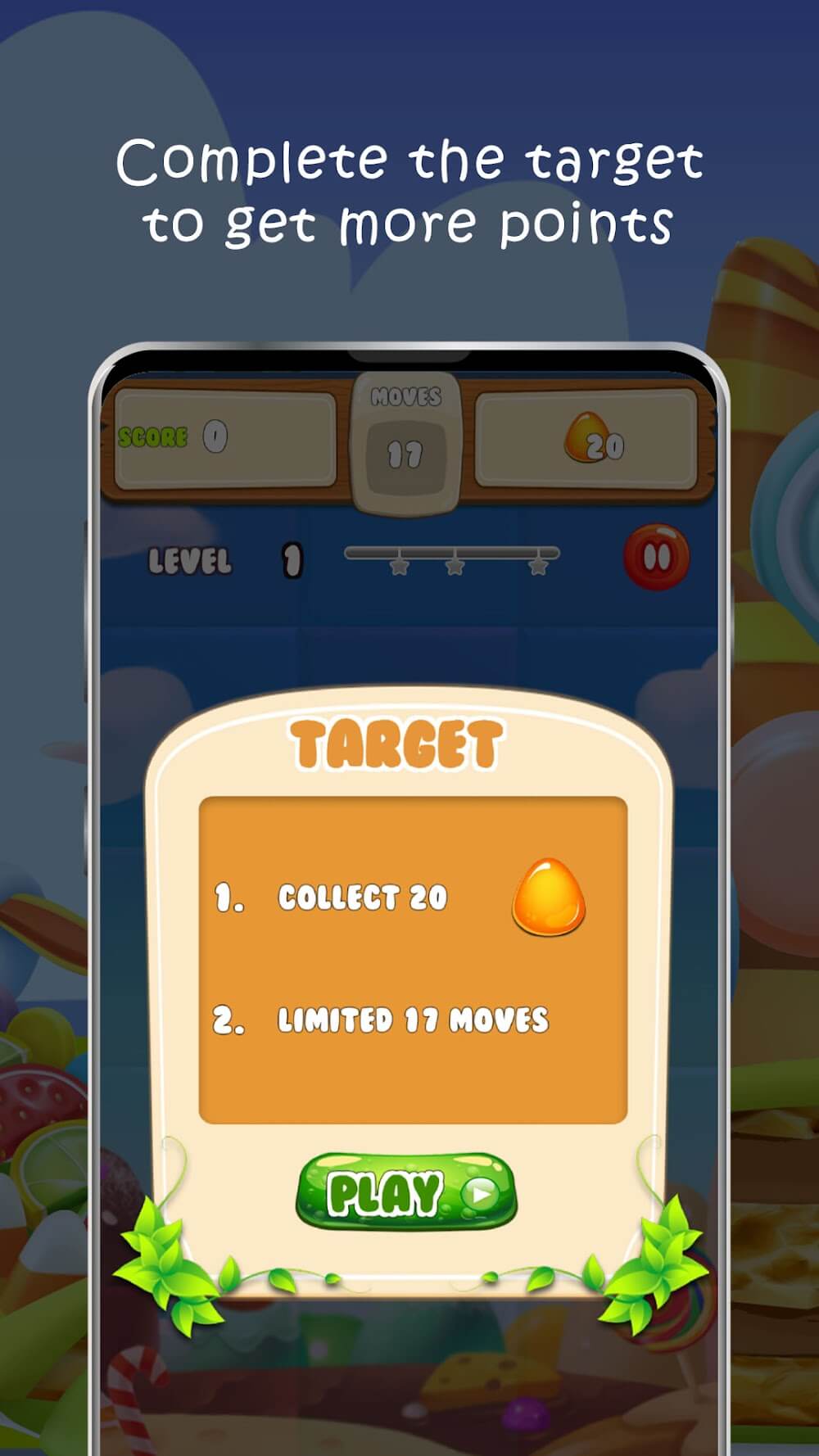 You can unlock bonus features and increase your speed around the candy track by avoiding the sweet drops and earning scores with swipe actions to match the candy. Magical aids make it simpler to navigate through challenging sections and advance the story; you can create them with certain combos or triggers in the level. Your objectives are also varied, but the most important is achieving the highest score within every level and getting juicy 3-star ratings from the game and other levels.