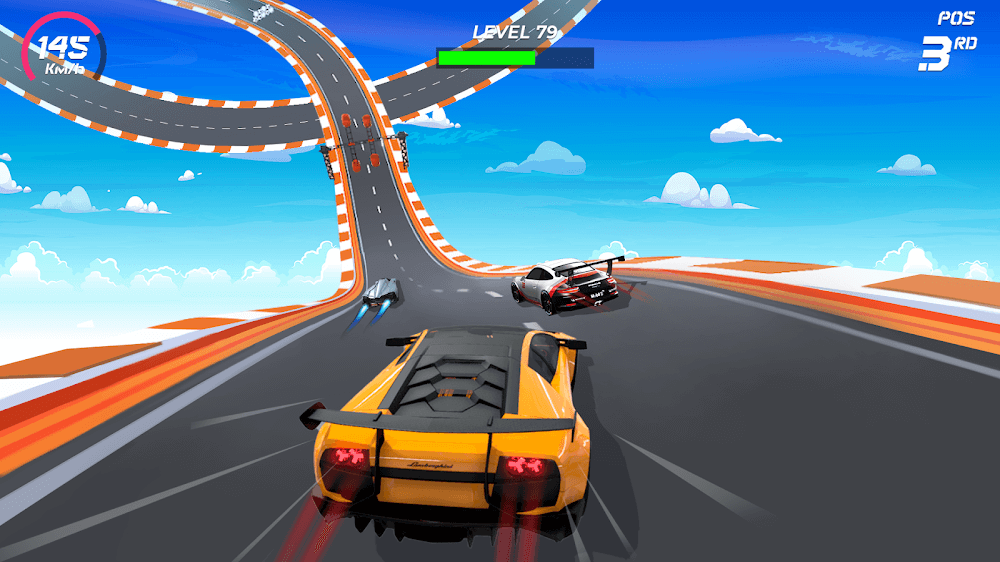 These obstacles will often be quite unexpected and you cannot predict them because some tracks will have a ring way shape and only when you get close will you realize it. At the same time, at the top of the screen, there is a progress bar for you to change when you are ready to reach the finish line and you will quickly explode with nitros energy to catch up with your opponents. The money you earn is completely used to upgrade stats like handling, top speed and accel so that skill and speed combine into one and help you win. Don’t forget to look through the list of cars you can own and try to win for it.