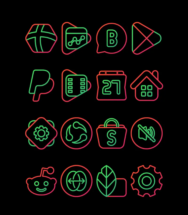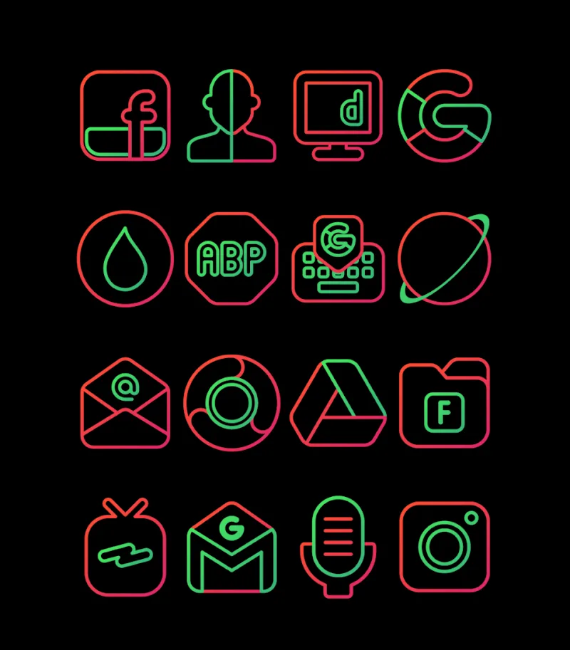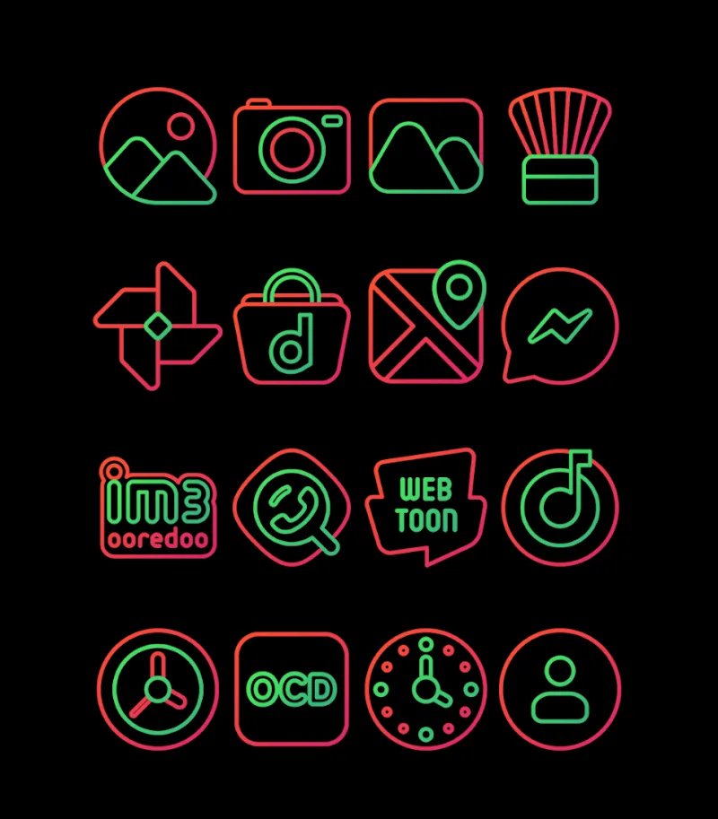 Simple strokes can draw great ideas for the icon collection developed by Carol – Icon Pack. Users will be able to use unique style icon templates with characteristic red and green strokes. All icons in the pack are high resolution and clear when applied to the user interface.