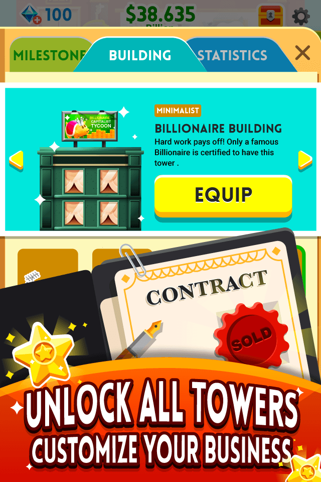 Making money is not too difficult in Cash, Inc. Fame & Fortune Game but it requires many things that you must pay attention to such as the amount of money generated or maintaining the operation of the building. Everything gradually becomes boring, but there will always be new, more interesting things: other types of businesses will continuously be unlocked and allow you to access different partners. These partners are like the managers of each building and they will take on the job of collecting money for you so you don’t have to do too much. But the amount of money you hire them is not cheap.