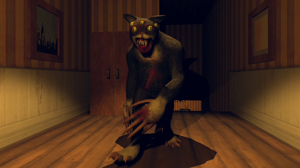 A horror and terrific game theme include in this game Cat Fred Evil Pet. Horror game. The storyline of this game is you live alone in a big house. But there are many rats and mice in your home. To survive in that full-of-mice house, you should collect money and food items in every corner and cupboard. Ensure your energy stays above zero because if your energy reader on the top side becomes null, you will lose the game. You can buy a cat to wipe out the mice’s nuisance in the house. But purchasing a cat is not enough; you should take care of it and buy cat food, toys, and a sleeping bed. Also, entertain the cat by playing music through a radio cassette. If you hurt the cat by any chance, it will become a monster and hunt you. If it happens, hide from the cat monster and stabilize your energy with food. Collect food without being captured by the beast. And unlock the main door to get out of the house and win the game.