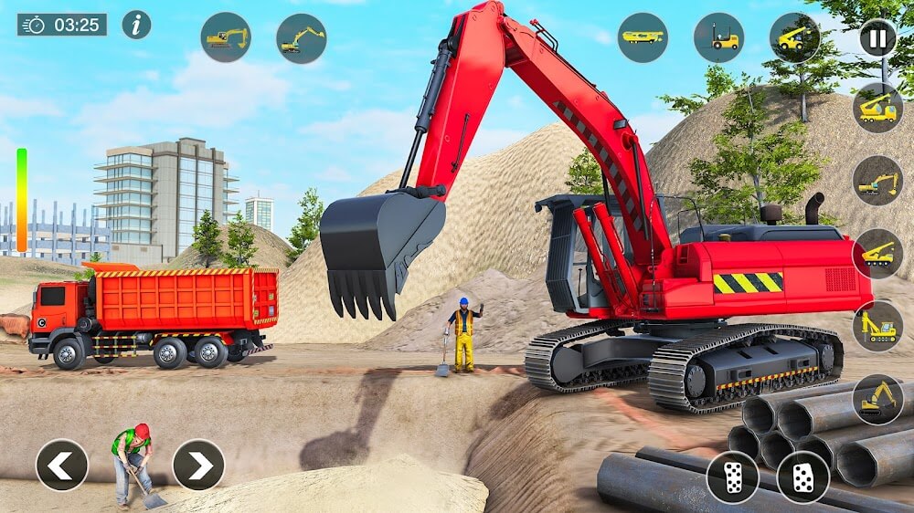 City Construction Builder Game allows players to steer several pieces of construction machinery. During their time in the game, the players get access to various construction machines, including bulldozers, road rollers, and dump trucks. For players to complete construction assignments, they must become adept at using each vehicle’s various skills and functions. The rotation and controls, along with the game’s hydraulic brakes, bring the experience much closer to operating actual heavy gear.