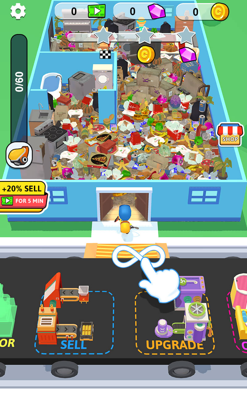 The game’s mechanics are straightforward to understand, as you just need to clean anything up with your crews and increase the workflow regularly. It’s been days since anyone from the cleaning staff has been here, and the mess is unbelievable. The garbage is stacked like a mountain, and your job is to clean them up slowly from the inside out. You can turn the garbage into money and earn extra dollars for your efforts. The garbage is near-endless, so you always have work to do for your money.