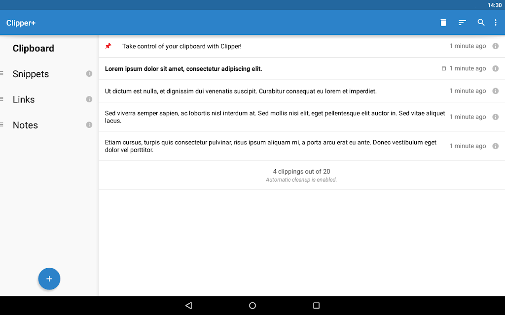 One of the most distinguishing features of Clipper+ is its capacity to save an unlimited number of clippings. Forget being limited to only the 20 most recent clippings; now, you can eliminate automated cleanup. Previously, this feature was only available on iOS. This feature sets this app apart, ensuring you will never have access to your essential clippings. Because this app protects against unintentional deletion, you won’t be concerned about losing any of your most crucial data.
