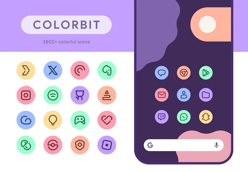 Colorbit Icon Pack delivers a vivid custom home screen experience through 3,700+ bright icons, each with an independent color palette to illuminate your display. Find the perfect icon hues no matter your wallpaper. Dynamic calendar icons keep pace with your schedule. Frequent updates add icons often. Simple application makes switching launchers and applying the pack hassle-free. Supported on all major launchers like Nova, Lawnchair, Apex and Action Launcher. With its uniquely colored icon theming engine, adaptive calendar icons and broad launcher support, Colorbit Icon Pack lets your home screen pop with personalized flair.