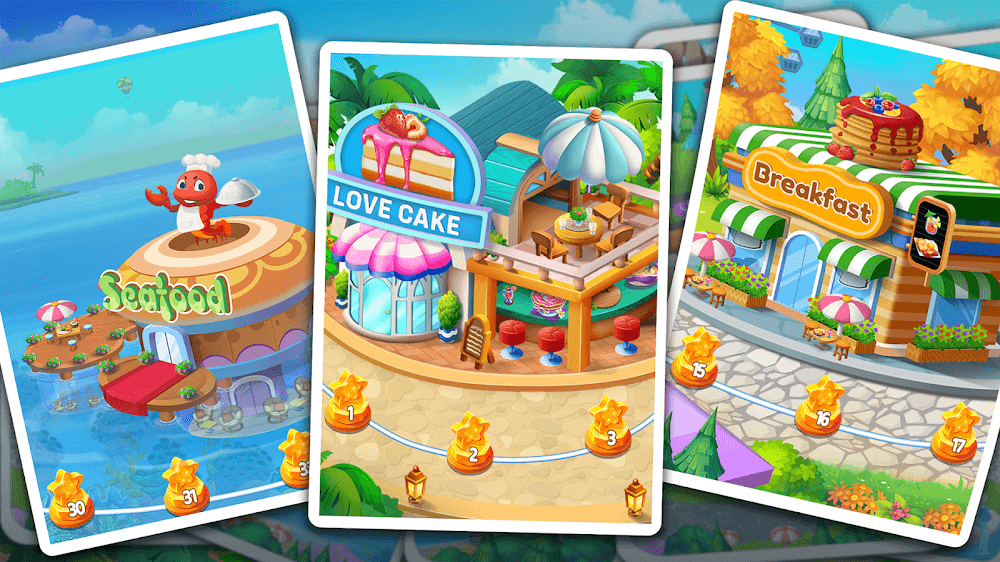 - Customizable Restaurants: When having a certain amount of resources, users will be able to decorate the current restaurant. This is absolutely necessary because each person wants to attract many guests to enjoy the dish. De