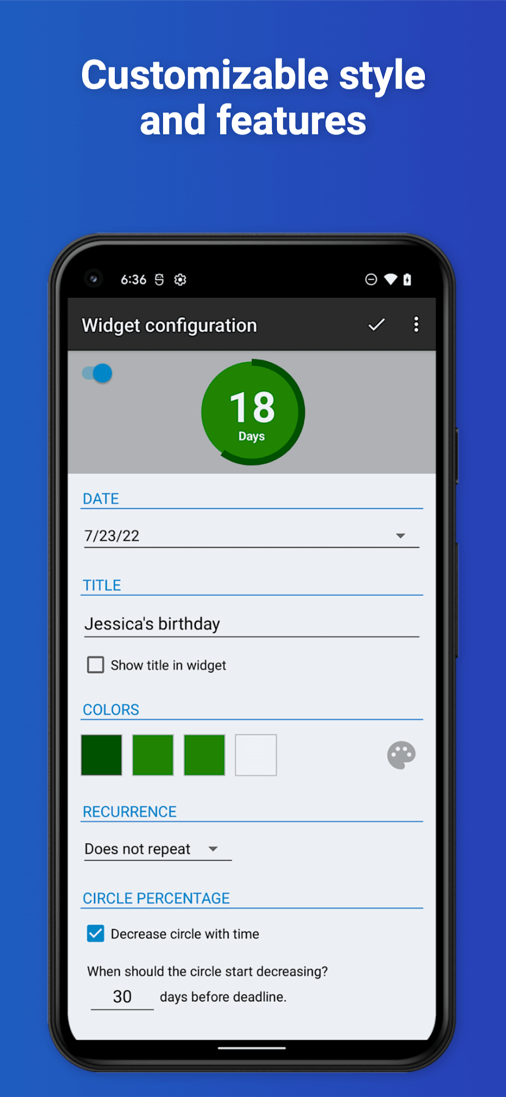This Countdown Widget app is the best app that you can find that allows you to use weeks. This countdown widget will enable you to show the countdown of how many leave regarding months, weeks, or days. And also, you can even have the choice to write a short title that will appear together with the countdown. And it allows you to customize based on what color you want and what color you like. This app is the fantastic software that can count down the critical date. And it would be good to have the function discussed above even in a premium version. Compared to the old version, this app has added a colors gallery, removed pesky bugs, and configured notifications.