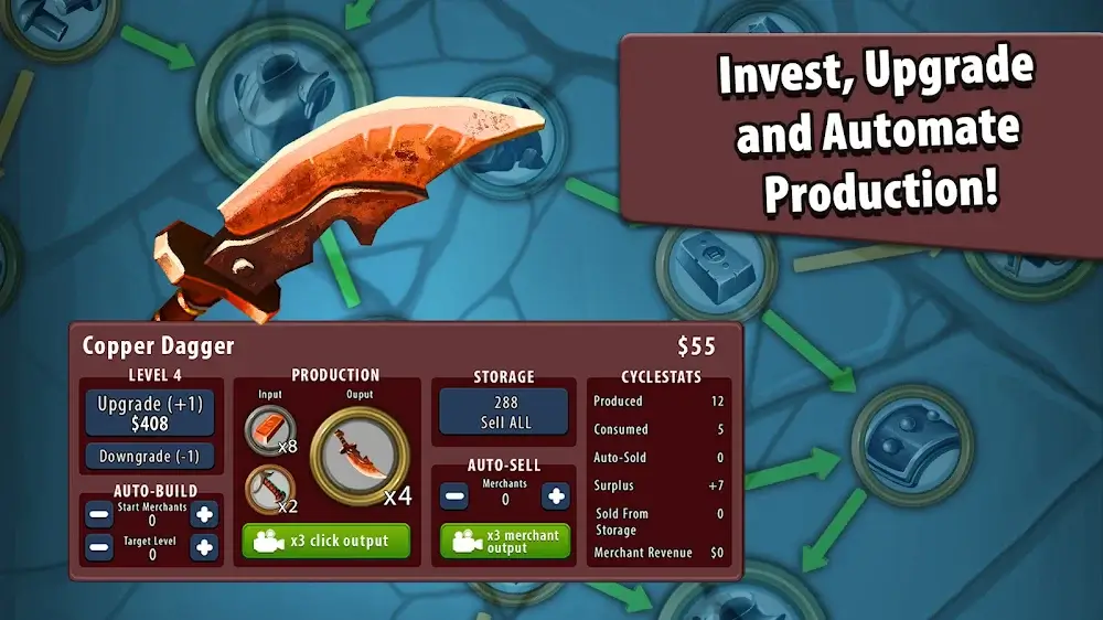 • Automatic Selling & Upgrades: Some processes will be able to be automated over time so you only need to focus on some other activities. Specifically, the goods that are often created will often be sold immediately.
