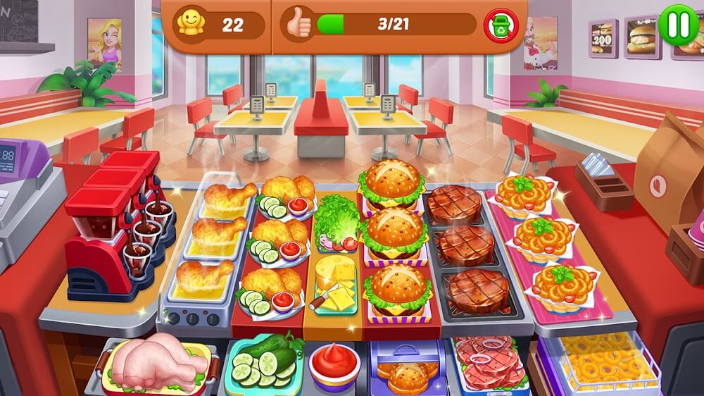 One of the most special highlights that Crazy Cooking Diner: Chef Game can bring to its players is definitely a fast-paced playing experience. Unlike regular cooking games, where players simply create dishes, this game requires them to do it quickly. Players will need to constantly speed up all of their work processes to be able to create dishes as quickly as possible. The restaurant is becoming more crowded than ever, and the player’s task will be nothing more than racing against time to keep orders from being burned.