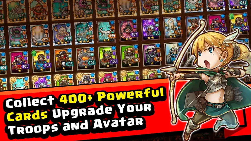 Crazy Defense Heroes Mod Apk brings you to extremely bloody and thrilling battles. You are immersed in struggles and have to face countless formidable opponents. Therefore, players need to equip themselves with a lot of weapons and collect many unique and attractive cards for themselves. Players are free to enjoy the heat of the war and comfortably conquer the levels that the game sets.