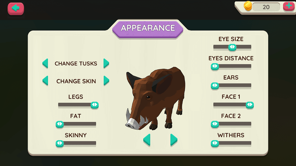 - You can select the pig character as you like and choose the size of the pig`s eyes, face, skinny, fat, ears, etc.