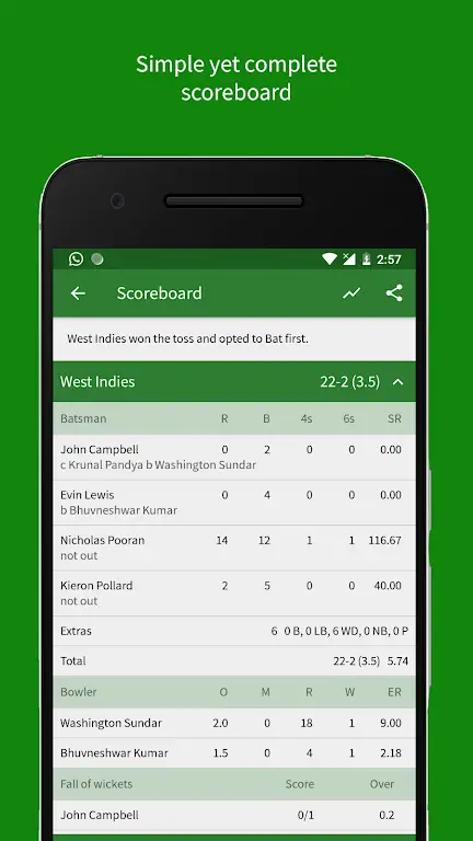 - Complete scoreboard: The system often offers a series of detailed information about some common activities. Specifically, you can see the perfect movements of batting, bowling, and FOW.
