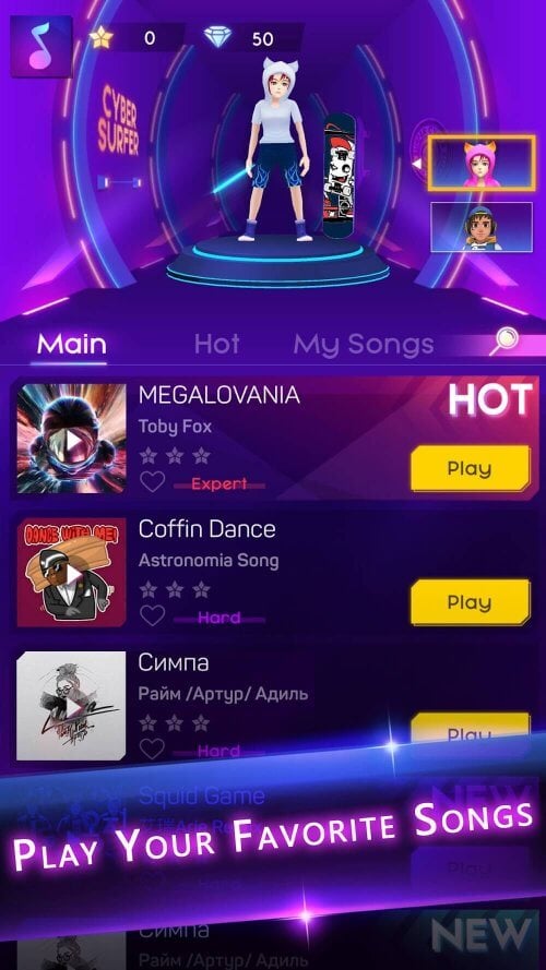 A collection of today’s most popular songs selected by today’s youth. Playlists are regularly revised to keep players happy. These great styles offer a wide range of musical tones and expressions. Listen to many songs sung by talented musicians. The focus will be on the lyrics, and players will better understand the musical genres. Cyber Surfer is more than just a fun video game; it’s also a nice audio playground. One-of-a-kind tracks are ideal for any artist. Adjust and be open to new possibilities. Create your favorite playlist. Follow the cues and complete the challenge with your style.