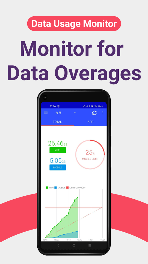 Data Usage Monitor is a handy tool for keeping track of how much time you spend online via Wi-Fi and mobile data, allowing you to assess your needs and make informed decisions. Its features provide access to data-filled charts and graphs, as well as detailed summaries of all Android apps, allowing you to determine which ones consume the most data.