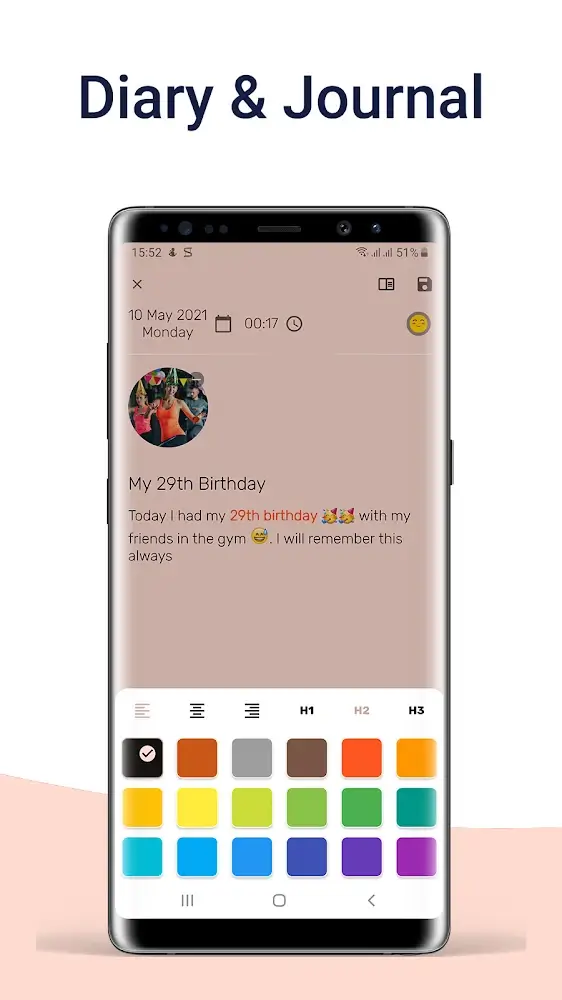 Diary, Private Notes with Lock is a place that users can use to put any of their thoughts, feelings, or views on all things in life. Journaling brings a lot of benefits because it not only helps you take notes and store important information but also helps you relieve stress. You can record anything you want without worrying about privacy because the application’s security is extremely high.