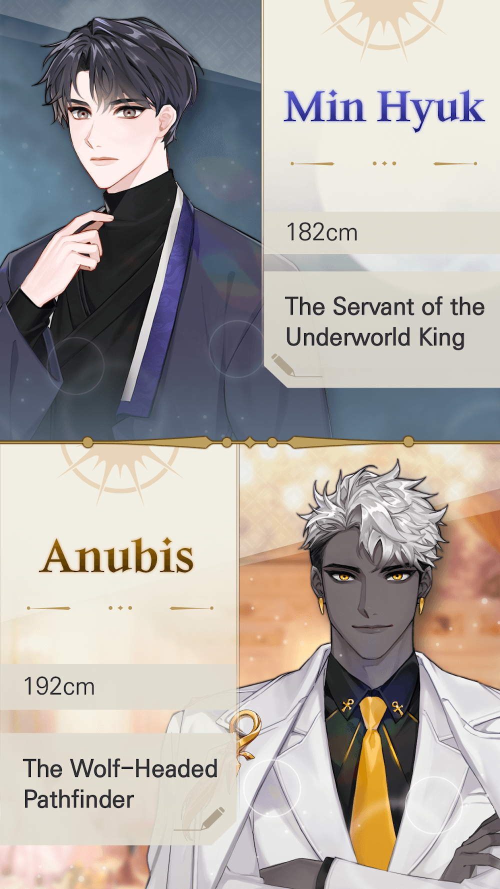 Dear My God, boys will make you have great memories in the world of the gods. You can meet Min Hyuk, Anubis, Hermes, and Thoth in many situations. The game presents you with hundreds of challenges to overcome. They will help you gain more experience developing feelings for the rest of the characters. In each scenario, the player will choose from two hints. In it, only one option can help you maintain your life here. These hot boys will help you have a good time with hundreds of memories. You can collect these fun experiences for a chance to return home. The number of 200 situations will continue to maintain your story.