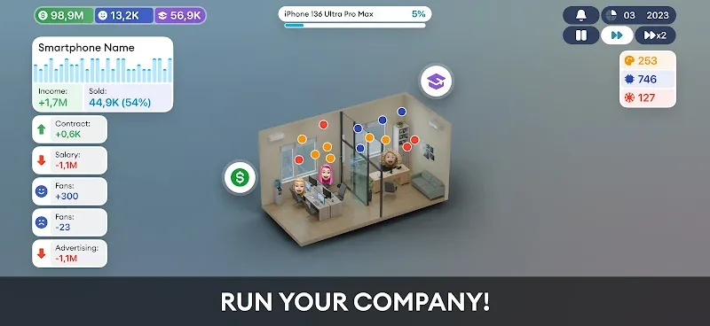 The journey to becoming a technology company founder will not be easy. Players will have to find a way to control all operations of the company and check the project every day. They can develop interesting projects that they are interested in. Many areas will be focused on by players and spend a lot of time researching.
